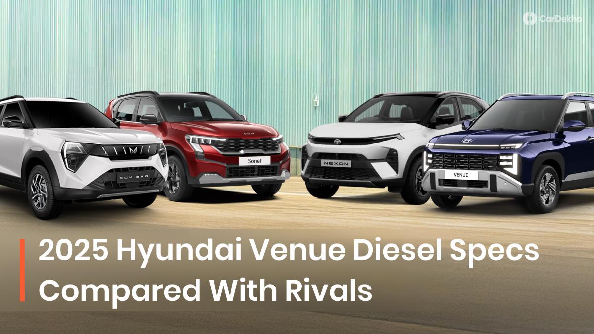 2025 Hyundai Venue vs Tata Nexon vs Mahindra XUV 3XO vs Kia Sonet vs Kia Syros: Diesel Engines Specifications Comparison