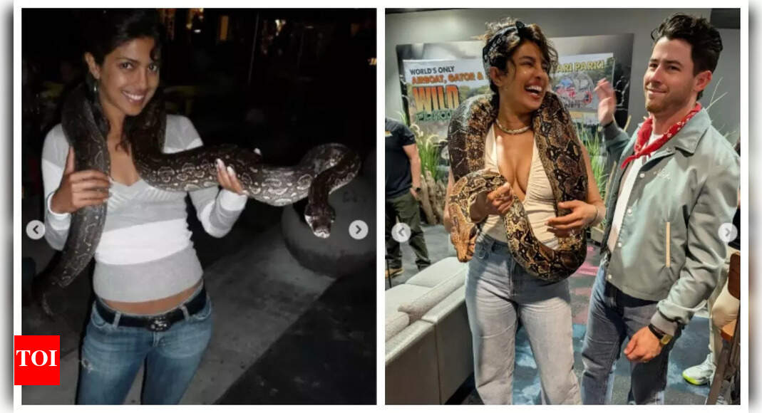 Priyanka Chopra shared “then and now” photos of herself posing with snakes, including a throwback from her 2011 film ‘7 Khoon Maaf’. While Priyanka appeared comfortable, her husband Nick Jonas seemed hesitant. The actress also voiced Kaa in ‘The Jung…