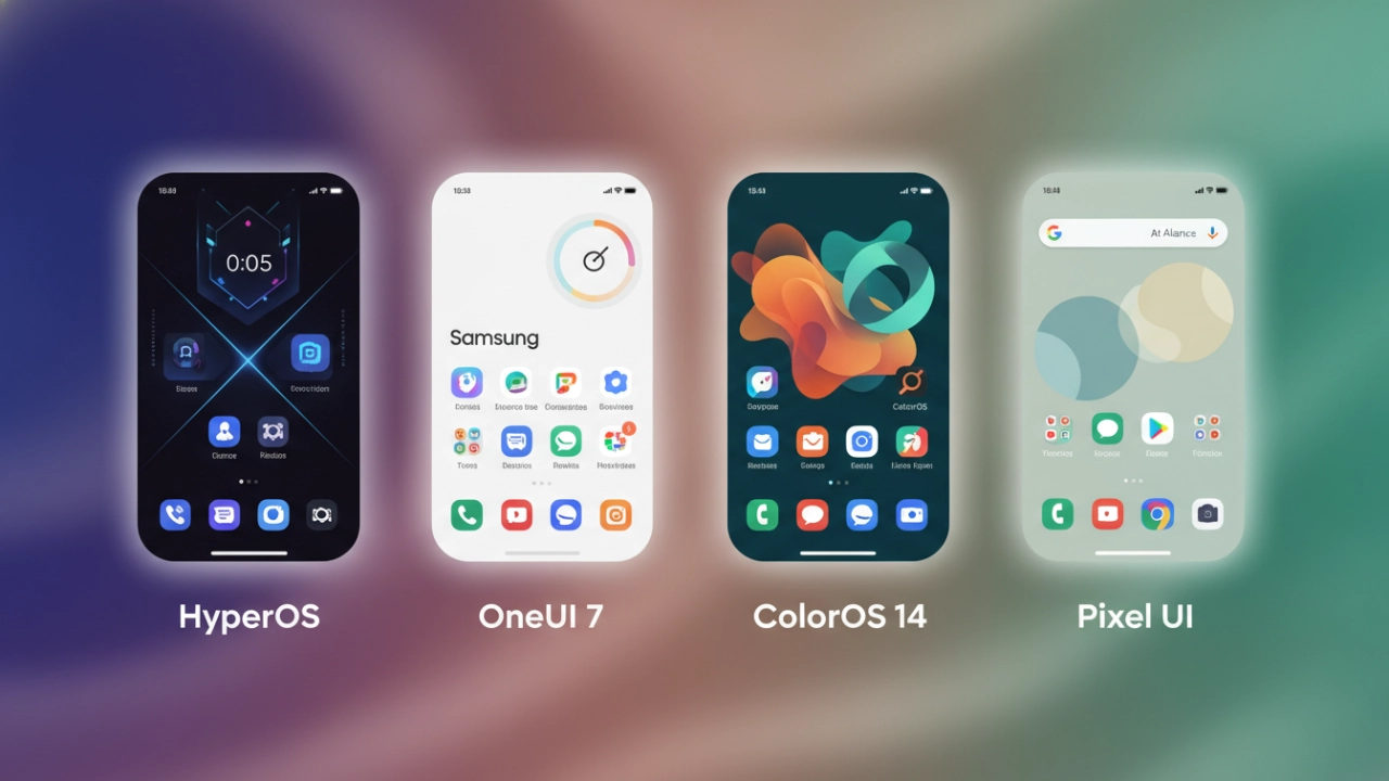 HyperOS vs OneUI 7 vs ColorOS 14 vs Pixel UI: HyperOS leads in ecosystem integration and fluidity, OneUI 7 dominates in productivity, stability, and long-term updates, ColorOS 14 offers the smoothest animations and most playful design, whi…