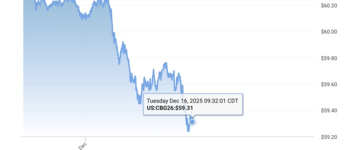 As of 9:47 a.m. ET on Tuesday, the front-month Brent Crude futures prices traded down by 2.10…